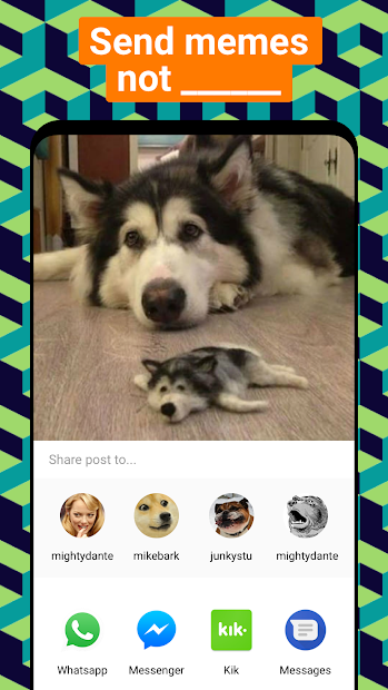 • Out-humor your friends. Always be the first person to share the latest trend with your peers and/or frenemies. Tap to share on e-mail, WhatsApp, Facebook, Instagram, IGTV and more.